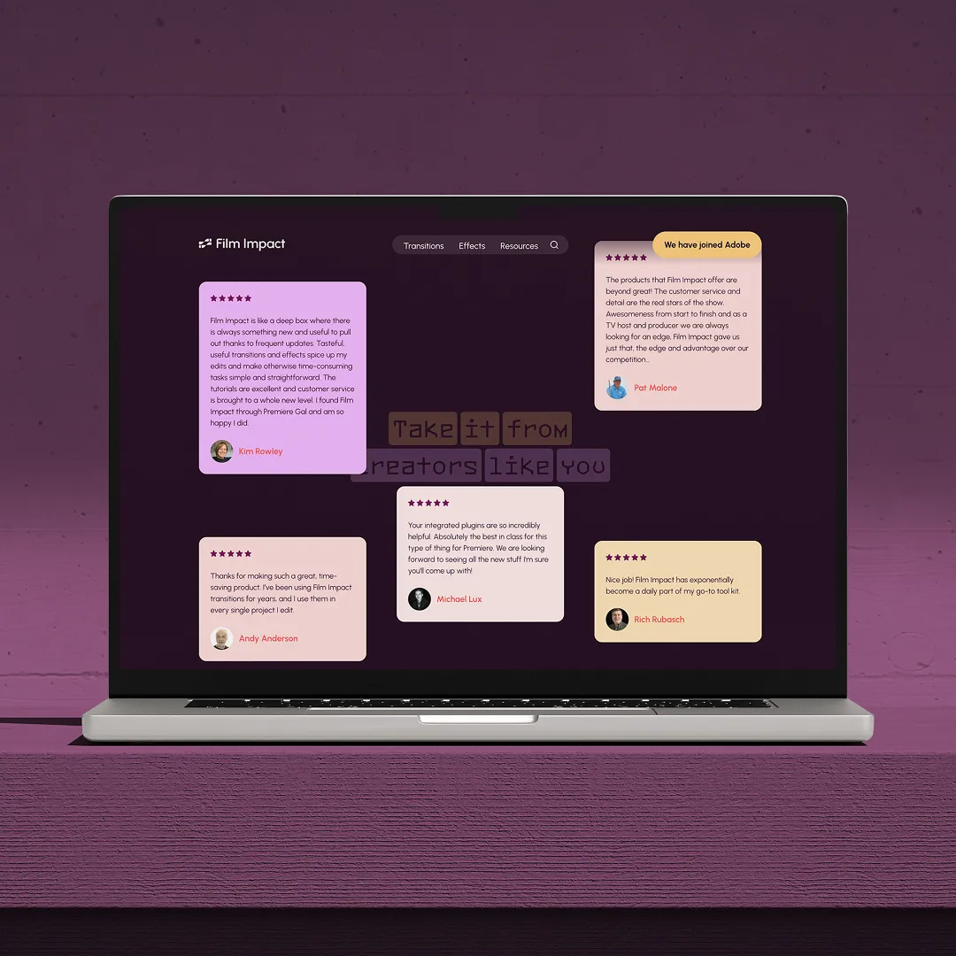 Film Impact ontwikkelt plug-ins voor Adobe Premiere Pro die editors wereldwijd sneller en creatiever laten werken. Hun tools combineren technische kwaliteit met gebruiksgemak: toegankelijk voor zelfstandige creators, krachtig genoeg voor grote studio’s. Hun businessdoel is helder: groeien in marktaandeel en een vaste waarde worden binnen de internationale Adobe-community.